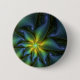 Badge Rond 5 Cm Etoile Abstraite, Bleu brillant Vert Or Fractal Ar