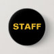 Le noir et l'or FOURNISSENT l'arrière - plan de personnel de noir de bouton d'insigne d'identification. Grand lettrage d'or. Utilisation à tout concert, exposition d'affaires, maison ouverte, affaire de charité, événement spécial, ou salon commercial, pour votre personnel ou volontaires ou pour ceux équipant un bureau de renseignements. Disponible dans différents prix, tailles, et formes et couleurs d'arrière - plan. Employez la personnaliser et l'éditez pour changer la couleur d'arrière - plan, ou la boîte de couleur pour des couleurs de police. (Note de Zazzle : n'importe quelle ligne blanche au bord du fond ou de côté est une réflexion d'ombre et n'imprimera pas le blanc.)