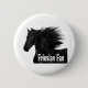 Portrait d'un bel étalon frison noir avec la longue crinière débordante, photographié et conçu par Magdalena Strakova. Inscription : Fan frisonne. Cadeau unique et original pour chaque amant frison de cheval !