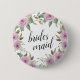 Identifiez les joueurs clés de votre douche nuptiale avec nos boutons floraux élégants et doucement chics. Bouton est composé de fleurs d'aquarelle violet rose et violet et de feuilles verts, avec "bridesmaid" inscrit à l'intérieur dans le script de calligraphie.