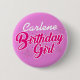 Badge Rond 5 Cm Fille d'anniversaire Typographie rose avec NOM sur