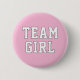Rassemblez l'équipe avec ce bouton de fête de révélation de genre audacieux avec le texte "Fille d'équipe" en blanc sur un fond rose vibrant. Le rose vif et classique fait une déclaration amusante et accrocheuse pour les célébrations de révélation de sexe et les fêtes prénatales. Tout le texte est entièrement personnalisable.