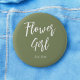 Badge Rond 5 Cm Fille Fleur Sage Vert Blanc Mariage