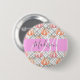Badge Rond 5 Cm Fille Floral Gris rose Pêche Citrouille Nom