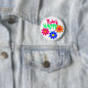 " Pensez qu'heureux" est ce que ce bouton inspiré vintage super de pinback indique ! Les années 60 lumineuses de couleurs regardant des fleurs dans le rose, le bleu et l'orange. Êtes-vous du feelin super ? Vous serez, quand vous portez cet insigne délicieux de hippie !