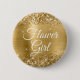 Un bouton glamour pour la fille aux fleurs de votre mariage. Tout le texte moderne élégant de style calligraphie est personnalisable. L'arrière - plan présente une feuille d'or imitation parties scintillant brillante. Ces éléments numériques s'impriment comme une photo.
