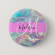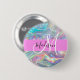 Nom et bouton initial du monogramme irisé holographique de l'arc-en-ciel. Votre nom personnalisé et votre monogramme sont écrits dans un élégant script écrit à la main avec un arrière - plan rose. Un cadeau d'anniversaire ou de Noël parfait !