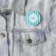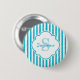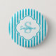 Ajoutez de la mode et du flair à votre style personnel avec ce bouton rayures peintes en bleu turquoise et blanc. Personnalisez ce nom mignon et élégant en ajoutant le nom et le monogramme initial de la jeune femme à la mode.