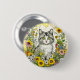 Badge Rond 5 Cm Gray Kitty Chat assis en Fleurs