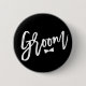 'Groom' And Bow Tie In Stylish White Brushed Script Calligraphy, Bridal Party / Bachelor's Party / Wedding Party / Wedding Rehearsal Pin Button.