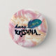 Badge Rond 5 Cm "Hare Krishna" Peacock Feather Hindu