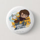 Badge Rond 5 Cm Harry et Hedwig en cartoon volant devant Poudlard