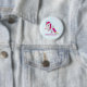 Un bouton avec un dicton amusant : Je fais tomber la magie. Conçu avec une licorne ailée blanche avec crinière rose, queue et sabots. La corne a des anneaux de couleur arc-en-ciel et ressemble à une sucrerie. Cette mignonne licorne s'élève sur ses pattes arrières. Coeur rose doux sur sa joue et de longs cils girly. Un arc-en-ciel à côté du mot magie.