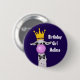 Bouton fille d'anniversaire avec un lama géant soufflant une grande bulle rose. Portant une couronne d'or et une cravate d'arc noir. Arrière - plan violet foncé.