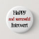 Une épingle blanche sur bouton avec "Happy and success Introvert" écrit dessus pour une déclaration positive.