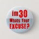 Badge Rond 5 Cm J'ai 30 ans, ce qui est votre excuse ?