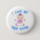 Bouton mignon avec "I Love My Twin Sister" en bleu texte et une petite fille mignonne en rose.