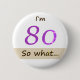 Je suis 80 donc ce Drôle Citation 80ème Bouton BIrthday. Un bon bouton pour quelqu'un qui célèbre le 80e anniversaire. Il est livré avec une citation drôle et inspirante I`m 80 alors quoi, et est parfait pour une personne avec un sens de l'humour. Un bouton de motivation pour elle.