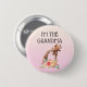 Un bouton qui dit : Je suis la grand-mère, avec un dessin mignon en aquarelles d'une maman et d'une petite girafe. La girafe mère se repose la tête au-dessus de la petite girafe, aimante et adorable. Joli bouquet de fleurs d'aquarelle rose, jaune, vert placé sous cette paire de chatons. Un arrière - plan dégradé créé avec une couleur rose douce qui se fond dans une couleur orange clair et achalandée.