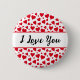Montrez votre amour avec ce bouton Je t'aime mignon Valentines Day Red Hearts. Il est conçu avec des doodles de coeur rouge modernes sur blanc. Le centre a "I Love You" en noir tendance écriture manuscrite. Cliquez sur l'option Personnaliser le modèle et suivez l'invite pour modifier les mots.