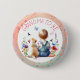 Grand-mère pour être des boutons baby showers. Joli aquarelle style art de l'air représentant une vue arrière d'une petite fille assise avec son petit chiot blanc chien Lab. Ils sont entourés de fleurs, de papillons et d'oiseaux. Les couleurs utilisées sont le rose, le violet, le rouge et le bleu. La petite fille porte des petites boules mignonnes et a de mignons cheveux blonds bouclés.