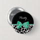 Bouton d'impression de girafe blanche et noire avec un joli ruban vert menthe attaché dans un joli arc. Personnalisez cette balise de nom poster de animal tendance en ajoutant votre nom. Image imprimée plate, pas l'arc réel.