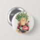 Antique postcard illustration from the 1900's, with a smiling face, rosy cheeks, humanized potted plant of four leaf clover shamrocks, surrounded by a red tampy heart and key, and a pretty golden yellow butterfly. Much good luck !