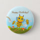 Badge Rond 5 Cm Joyeux anniversaire avec des abeilles au miel