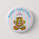 Joyeux Noël rose et bleu Gingerbread homme Button