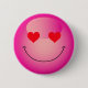 Sympa, heureux, souriant, émoji rose yeux coeur bouton badge