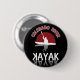 Kayaking Colorado River - Kayak Lovers Design. Silhouette d'un kayakiste devant un coucher de soleil avec le mot Kayak se reflétant dans l'eau. Bouton pour les amateurs de kayak.