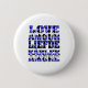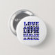 Aimez-vous les boutons d'épingle à thème d'amour? Ce bouton épingle en arrière dit amour en anglais, italien, français, néerlandais et suédois avec un motif de coeur bleu!