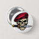 Un mascotte militaire saisissante représentant un crâne humain très détaillé portant un béret de parachutiste bordeaux profond. Le crâne serre une dague de combat tactique entre ses dents, avec une poignée dorée et une lame en acier poli. L'œuvre d'art utilise une esthétique de bande dessinée propre avec des contours noirs épais et un ombrage subtil, ce qui la rend idéale pour les vêtements, les avatars de jeu ou les insignes d'unité. Le fond gris neutre fait ressortir avec intensité les rouges vifs et les accents dorés.