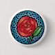 Un rose rouge et pêche-hued entouré par le knotwork celtique bleu lumineux dans le style en verre souillé de faux.