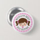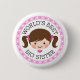Bouton/goupille mignons de pinback comportant une petite fille de bande dessinée avec les cheveux bruns attachés dans des tresses avec les arcs roses. Texte "la meilleure grande soeur du monde". Autour de est une frontière ronde et rose avec le pois. En outre disponible dans une version pour de petites soeurs.