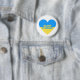 Express votre amour et votre soutien pour le peuple d'Ukraine avec ce coeur bleu et jaune drapeau d'Ukraine avec le message Gloire à l'Ukraine, qui se traduit par Slava Ukraini. Il est montré ici sur un bouton rond broche back disponible en plusieurs tailles. Soutenez l'Ukraine avec ce design de coeur mignon !
