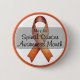 Ce bouton rond de 2,25 pouces est une façon audacieuse de reconnaître le Mois de sensibilisation au cancer de la colonne vertébrale en mai, aidant à sensibiliser et à soutenir les personnes touchées. En haut, "May is" s'affiche dans une police forte et audacieuse, ce qui permet de distinguer le message. Ci-dessous, "Mois de sensibilisation au cancer de la colonne vertébrale" est écrit avec élégance en fluidité cursive, symbolisant la force, l'espoir et le plaidoyer. Au centre, un ruban de sensibilisation orange vif se concentre, représentant la lutte contre le cancer de la colonne vertébrale et la promotion de la recherche et de meilleurs traitements. Une bordure orange en gras encadre le bouton, créant un design poli et attrayant. Portez ce bouton fièrement sur votre veste, votre sac ou votre cordon pour contribuer à la sensibilisation, soutenir les efforts de recherche et montrer sa solidarité avec ceux qui luttent contre le cancer de la colonne vertébrale. Un moyen petit mais significatif de faire la différence !