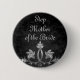 Magnifique épingle sur bouton dans un noir grungy avec un design feuille fantaisie sur elle en gris argenté. "Step Mother of the Bride" est écrit en haut.