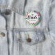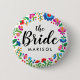 Parfait pour les enterrements de vie de jeune fille et les répétitions de mariage, ce bouton blanc chic présente une couronne de fleurs et de feuillage inspirée de la broderie colorée des artisans mexicains autochtones et un texte facile à personnaliser pour le nom de la mariée. Parfait pour un mariage à destination ou simplement un thème mexicain, ces boutons offrent à vos amis et à votre famille un moyen facile d'apprendre et de se rappeler qui est qui lors de vos événements de célébration.