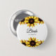 Bouton de mariage Sunflower Bride avec tournesols jaunes aquarelle florale et texte personnalisé sur fond blanc.Vous pouvez utiliser ceci pour une douche de mariée, un dîner de répétition, une douche de couple, des fiançailles et une réception. Utilisez l'option de personnalisation de ce modèle pour changer le texte | Utilisez l'option de personnalisation avancée pour changer le style et la couleur du texte si nécessaire. Ce produit fait partie d'une collection ; veuillez donc consulter notre collection de magasin pour des articles assortis.