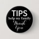 Bouton Pinback personnalisé du Merci de conseils. Conseils Aidez ma Famille, Merci. Peut-être que les pourboires payent votre loyer? payent votre hypothèque? fournissent une maison? payent pour l'école? Utilisez ce modèle facile pour personnaliser le texte selon vos besoins. Vous pouvez customiser la taille et la forme de votre bouton.