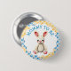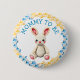 A cute boy's baby shower mommy to be button with adorable crocheted bunny rabbit.