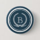 Conception de monogramme avec décoration de couronne de laurier en forme arrondie rayée sur arrière - plan bleu