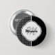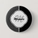 Un bouton moderne noir et blanc avec un motif en pied de fond en bandes verticales. Personnalisez cette étiquette de nom contemporain dans des tons gris stylisés en ajoutant le nom et les initiales monographiques de la jeune femme à la mode.