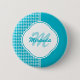 Un bouton chic bleu aqua et turquoise avec un motif en houndstooth en bandes verticales. Personnalisez cette étiquette de nom contemporain dans une teinte tendance d'aqua et de turquoise en ajoutant le nom et les initiales monogrammes de la jeune femme à la mode.