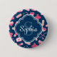 Badge Rond 5 Cm Motif rose et bleu d'infirmière avec monogramme