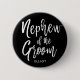 Faites du Nephew of the Groom une expérience très appréciée avec ce nom personnalisé spécial boutons personnalisés. Il présente les mots "Nephew of the Groom" dans un élégant texte de style script sur fond noir.