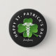Nurse Saint Patricks Medical Green Shamrock Name Button Pin is designed with customizable black background and a big shamrock four leaf clover and white caduceus symbol on the center. The text is "Happy St. Patrick's Day" is curved around the clover. Personalized with name in white calligraphy script lettering on lower area. Great for nurses, family practitioners, doctors or anyone who works in the medical profession.