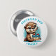 Bleu Otter thème garçon de premier anniversaire bouton garçon. Mignonne loutre de dessin animé tenant un gâteau d'anniversaire.