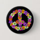 Badge Rond 5 Cm Panneau de paix Floral sur noir
